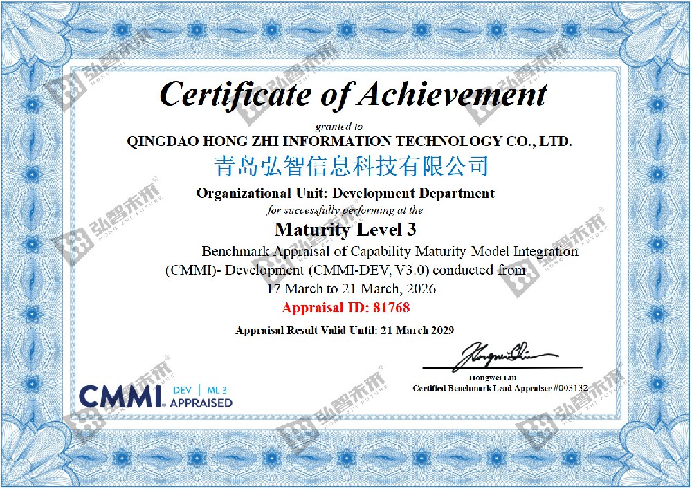 春潮涌动启新篇,笃行致远再登峰。2026年3月,青岛弘智信息科技有限公司再传喜讯,继2017年首次通过CMMI3(能力成熟度模型集成)评审后,再次顺利通过CMMI3评审,成功斩获CMMI3认证证书。标志着公司在软件研发管理、项目交付质量、流程标准化等方面持续保持国际主流水平。青岛弘智核心技术团队成员具备20年以上制造业行业经...